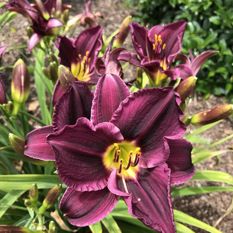 Рассада лилейника Грэйп Вельвет (Grape Velvet) относится к гибридным сортам, которые на зиму уходят в спячку. В цветнике такие растения смотрятся эффектно. При цветении образуется сразу несколько бутонов на одном стебле, вытягивающемся из широких кустов. Семена пригодны для хранения и проращивания. Цветок имеет пурпурно-фиолетовый оттенок с контрастно желтым горлышком. По краю бархатистых лепестков идет аккуратная гофрировка. Корни лилейника Грэйп Вельвет неплохо зимуют в открытом грунте без дополнительных укрытий, что позволяет ежегодно наслаждаться цветением этого прекрасно сорта.