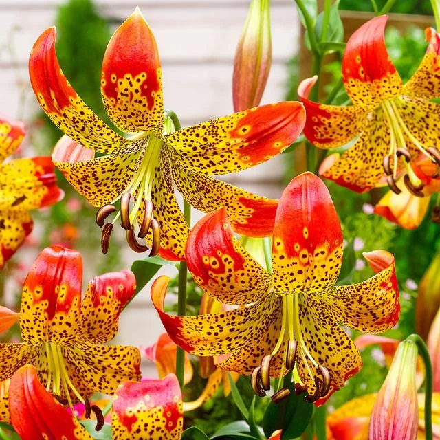 Саженцы и рассада Лилии видовой Фьюжн (Lilium Martagon hybrid Fusion) относятся к редким межвидовым гибридам длинноцветковых и леопардовых лилий. Растение высокорослое, может достигать в высоту 130 см. Отличается мощным стеблем. Цветки крупные (до 18 см в диаметре).