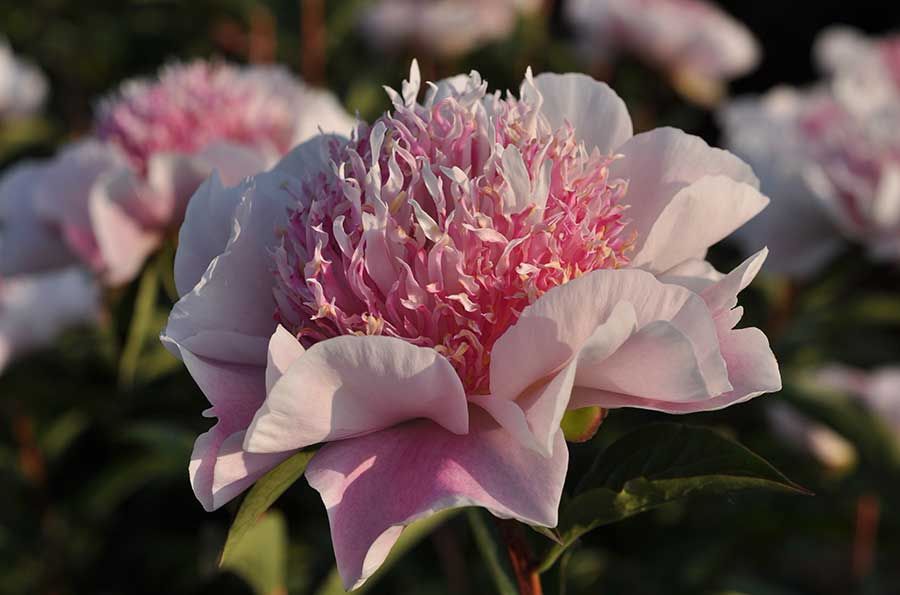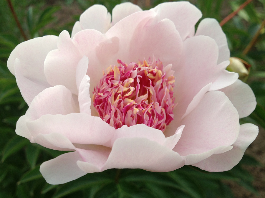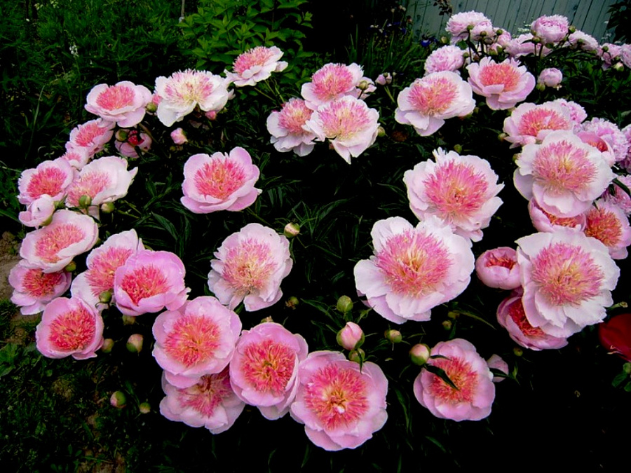 Рассада пиона молочноцветкового Ду Телл (Do Tell) подарит саду роскошный куст высотой до 90 см с нежными и бесподобно красивыми бутонами. У этого сорта японская форма цветка: с бледно-розовыми внешними лепестками и узкими внутренними красного, белого, пурпурного и малинового оттенков. Разветвленные стебли тонкие, но достаточно прочные, имеют боковые бутоны. Пион молочноцветковый Ду Телл получил медаль от американского сообщества, и его семена широко используются в селекции. Порадовать своим эффектным цветением может уже в конце мая. Прекрасно смотрится в летних букетах.