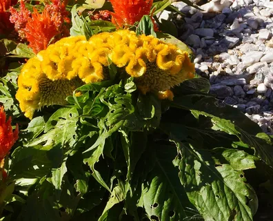 Целозия гребенчатая нео голд - это удивительное растение с яркими желтыми цветками, которые радуют глаз в течение нескольких месяцев в году. Ее стебель прочный и прямой, достигает высоты до 100 см, что делает эту целозию заметным акцентом в вашем саду. Листья растения имеют насыщенно зеленый оттенок, создавая красивый контраст с яркими цветками.